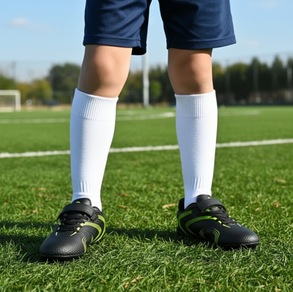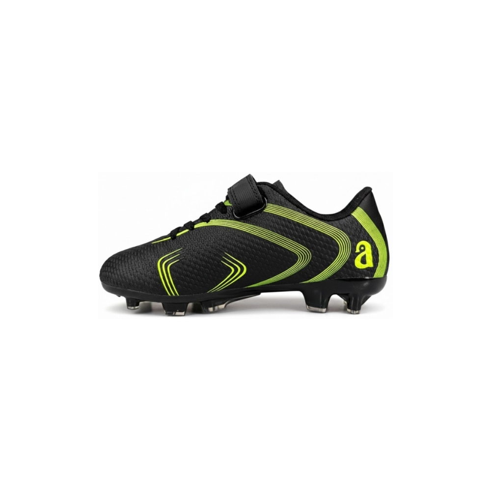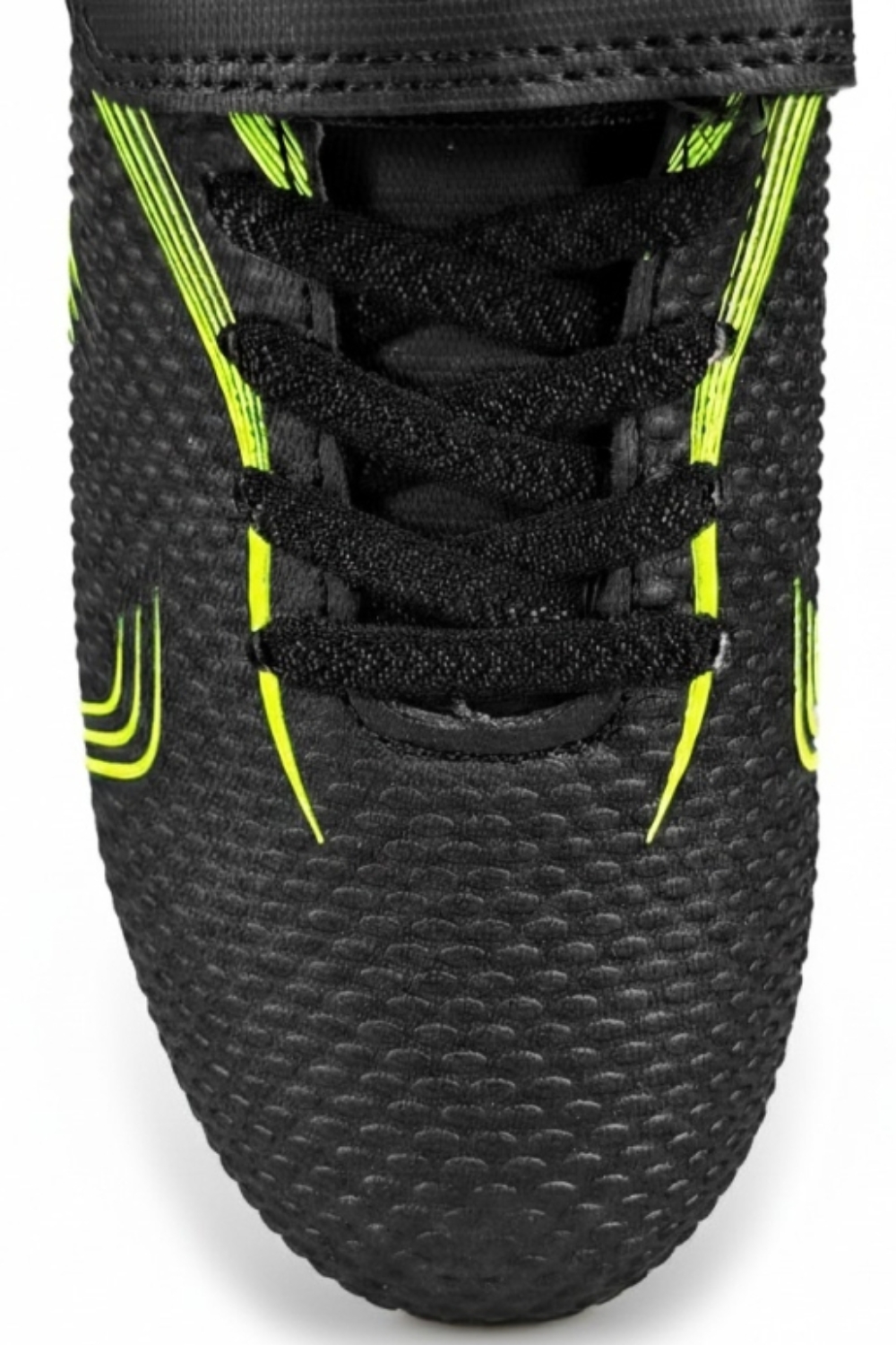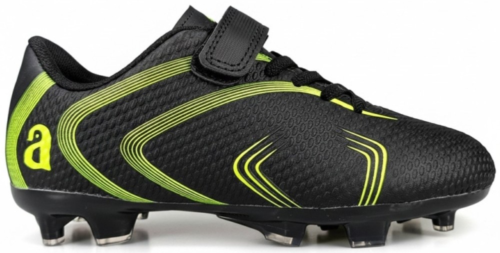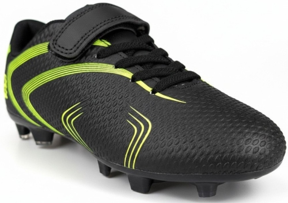 Te nowoczesne korki piłkarskie dla dzieci to połączenie profesjonalnego wyglądu z rozwiązaniami, które realnie wspierają rozwój młodych zawodników. Uniwersalna podeszwa typu lanki sprawia, że buty doskonale radzą sobie zarówno na naturalnej trawie, jak i na sztucznych nawierzchniach, takich jak Orlik, dzięki czemu nie ma potrzeby inwestowania w kilka par obuwia. Dynamiczny, czarno-neonowy design przyciąga wzrok i dodaje pewności siebie podczas każdego meczu i treningu.