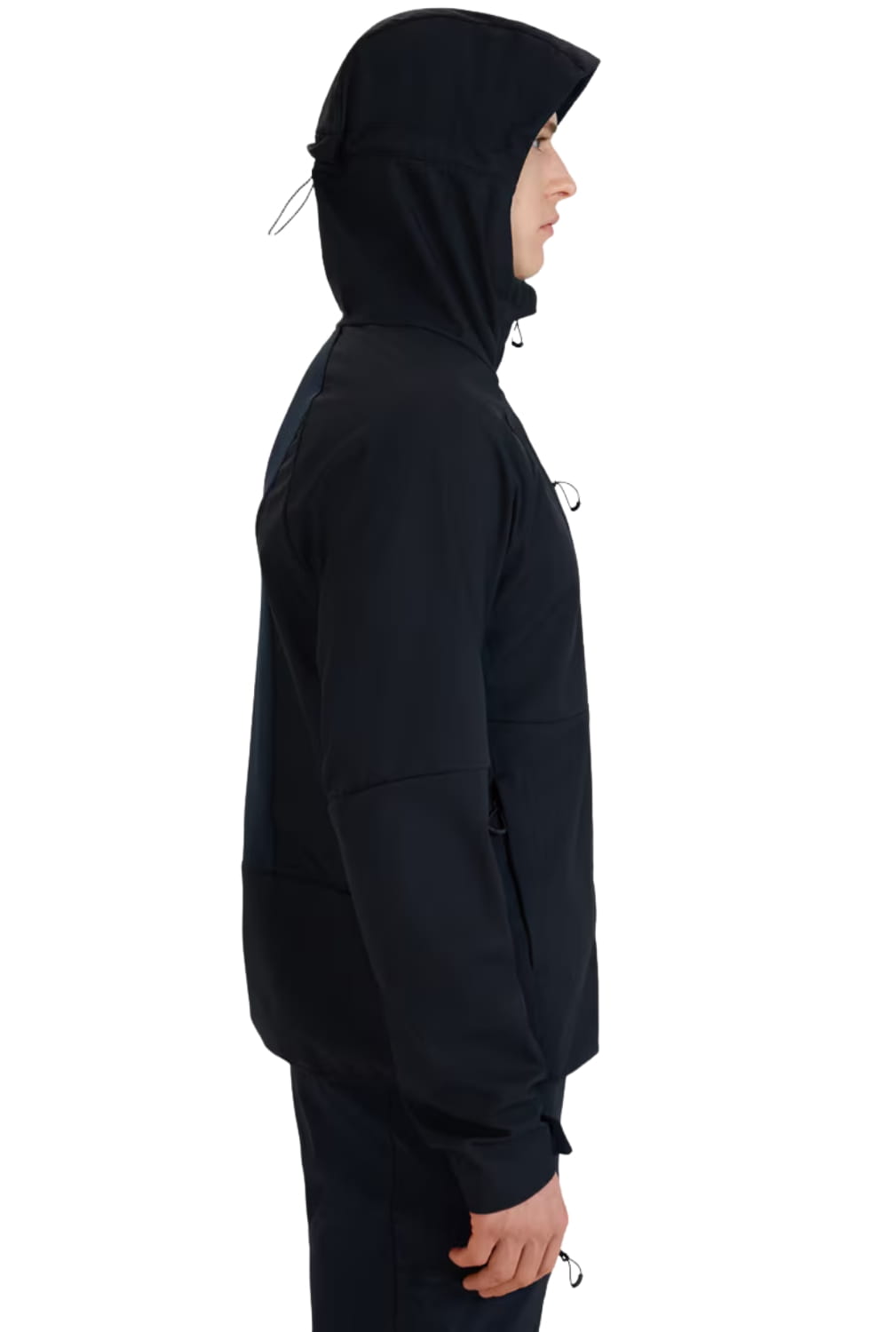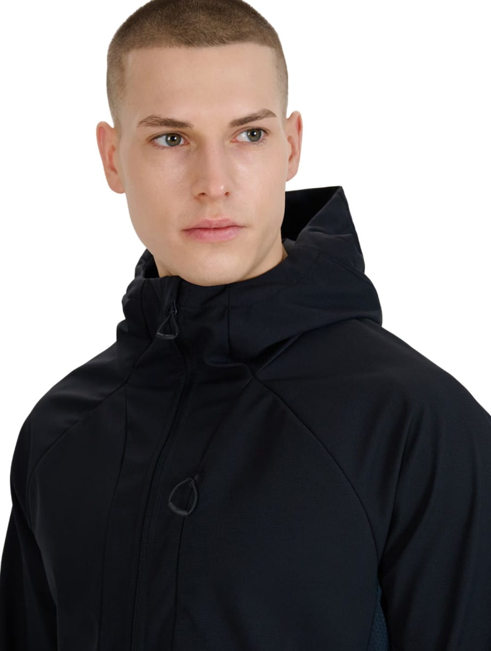 Kurtka posiada zintegrowany kaptur z regulacją objętości i głębokości oraz wysoki kołnierz, który osłania szyję przed chłodem. Rękawy zakończone mankietami z regulacją na rzep umożliwiają indywidualne dopasowanie.