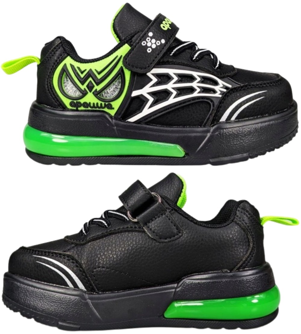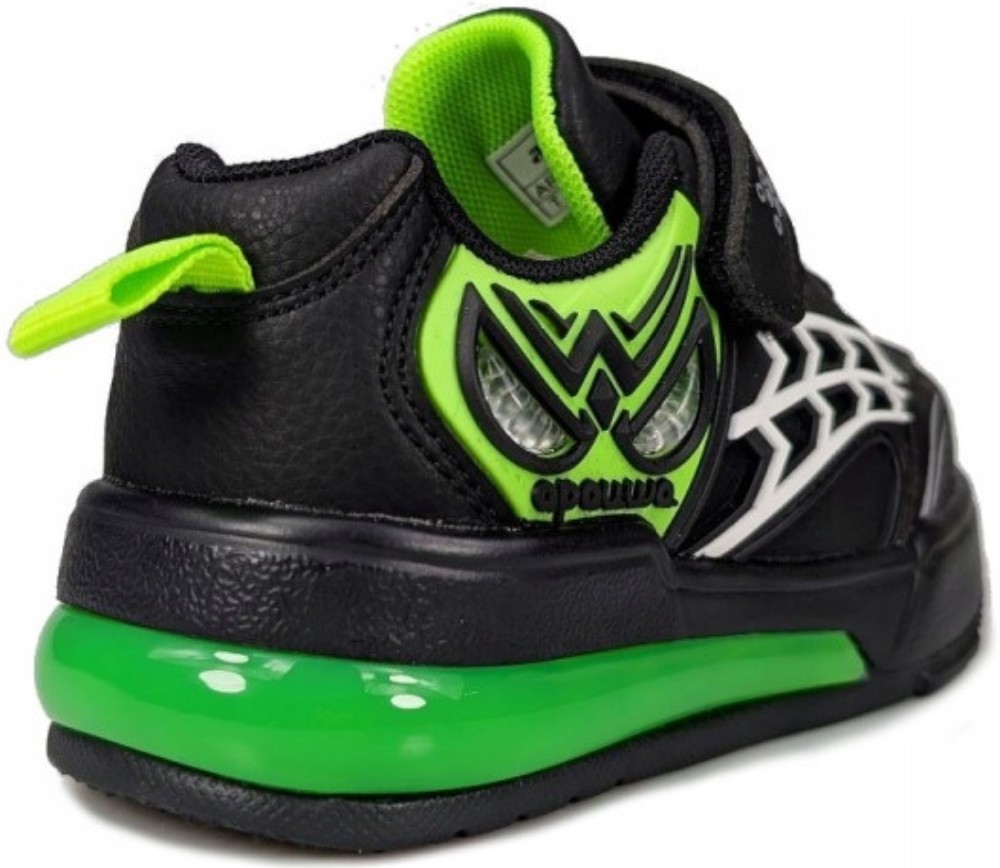Buty dziecięce Apawwa Spider z świecącą podeszwą T6518P czarno zielone