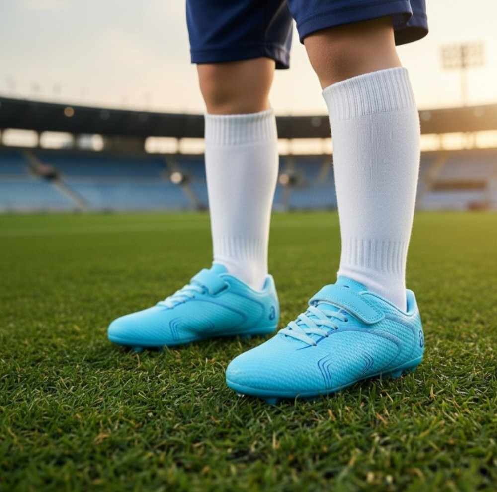 Te nowoczesne korki piłkarskie dla dzieci to połączenie profesjonalnego wyglądu z rozwiązaniami, które realnie wspierają rozwój młodych zawodników. Uniwersalna podeszwa typu lanki sprawia, że buty doskonale radzą sobie zarówno na naturalnej trawie, jak i na sztucznych nawierzchniach, takich jak Orlik, dzięki czemu nie ma potrzeby inwestowania w kilka par obuwia. Dynamiczny, czarno-neonowy design przyciąga wzrok i dodaje pewności siebie podczas każdego meczu i treningu.