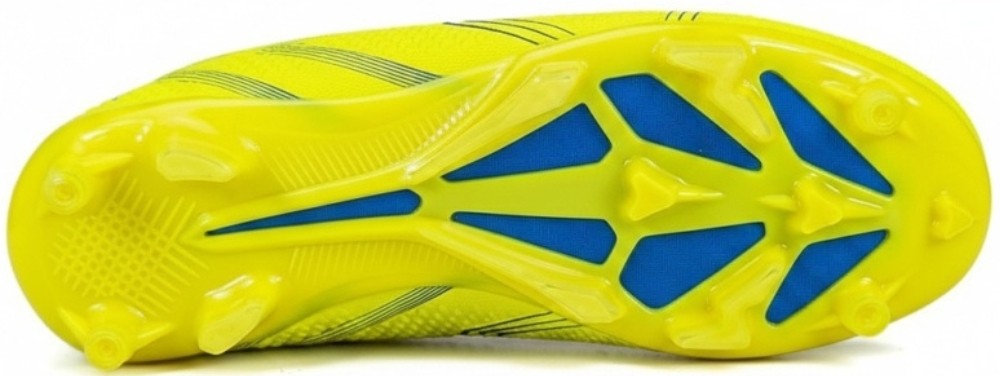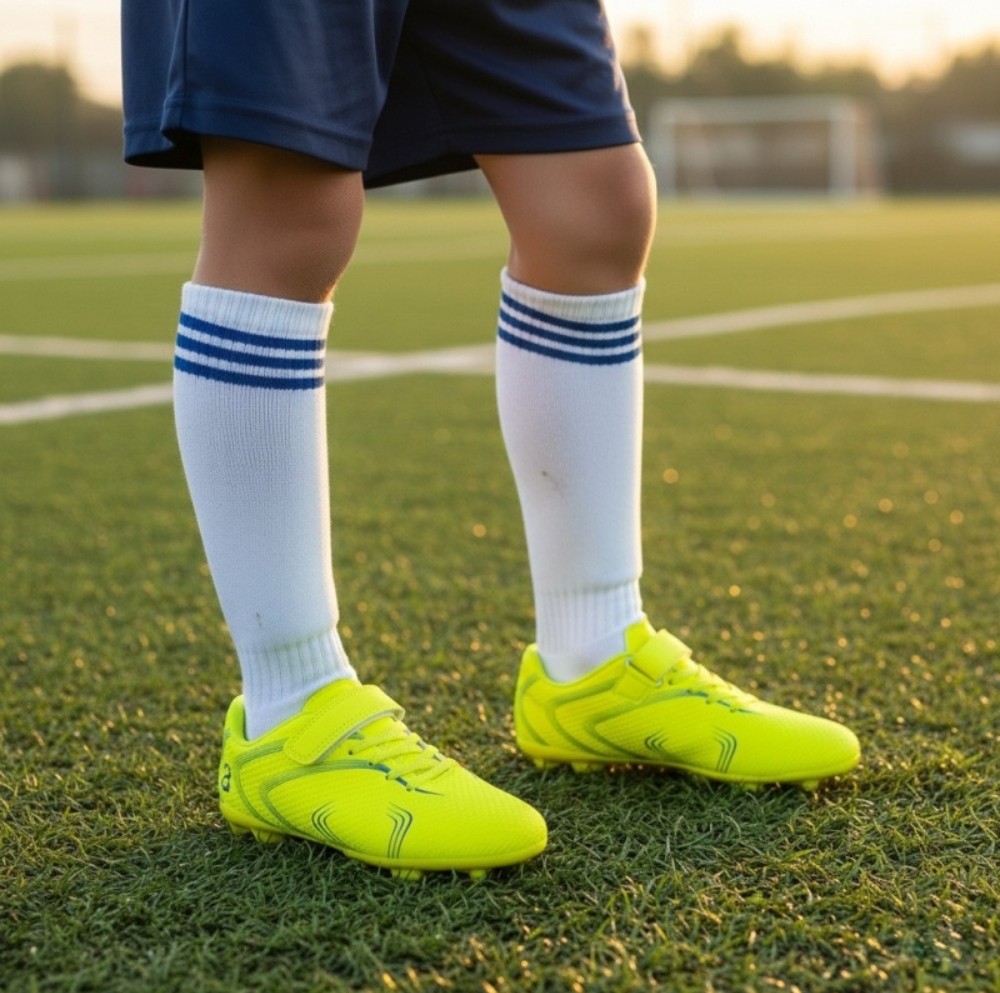 Te nowoczesne korki piłkarskie dla dzieci to połączenie profesjonalnego wyglądu z rozwiązaniami, które realnie wspierają rozwój młodych zawodników. Uniwersalna podeszwa typu lanki sprawia, że buty doskonale radzą sobie zarówno na naturalnej trawie, jak i na sztucznych nawierzchniach, takich jak Orlik, dzięki czemu nie ma potrzeby inwestowania w kilka par obuwia. Dynamiczny, czarno-neonowy design przyciąga wzrok i dodaje pewności siebie podczas każdego meczu i treningu.